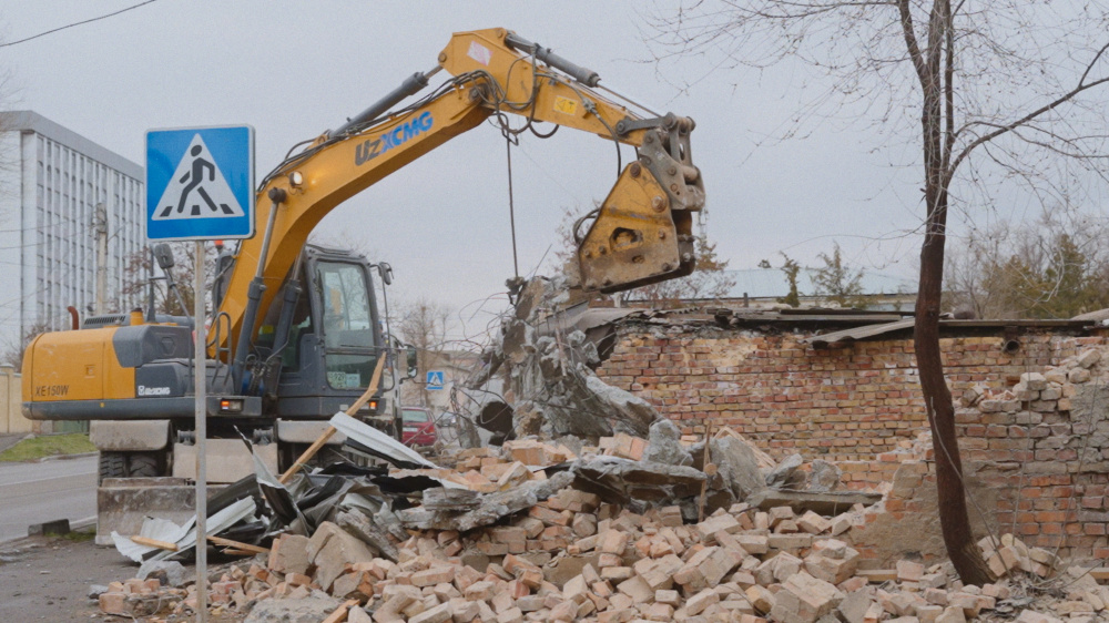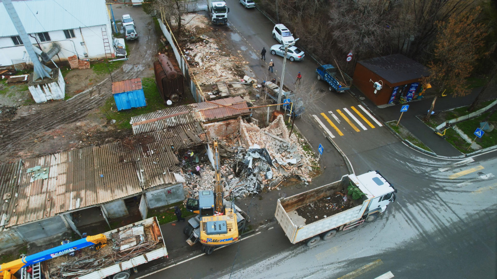 По словам владельцев, сегодня в обед, 10 марта, сотрудники "Тазалыка" пригнали спецтехнику и приступили к демонтажу металлических конструкций.