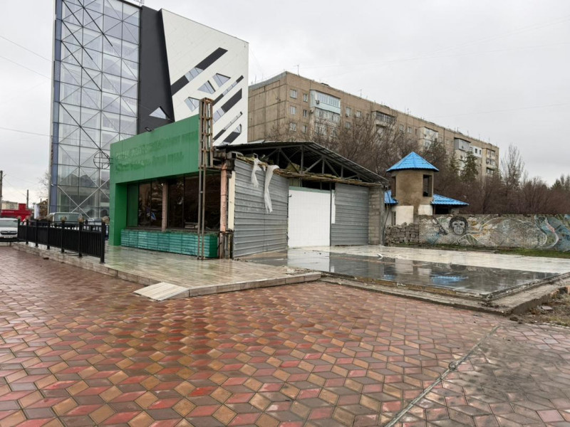 В 6-м микрорайоне Бишкека сносят пиццерию (фото)
