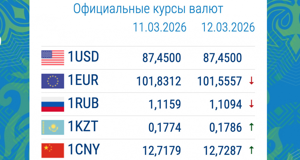Курс иностранной валюты Нацбанка Кыргызстана на 12 марта выглядит следующим образом:
