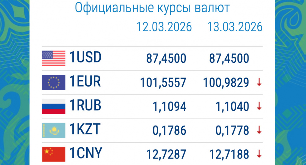 Нацбанк Кыргызстана представил следующий курс валют на 13 марта: