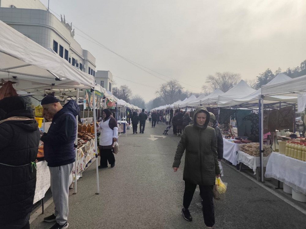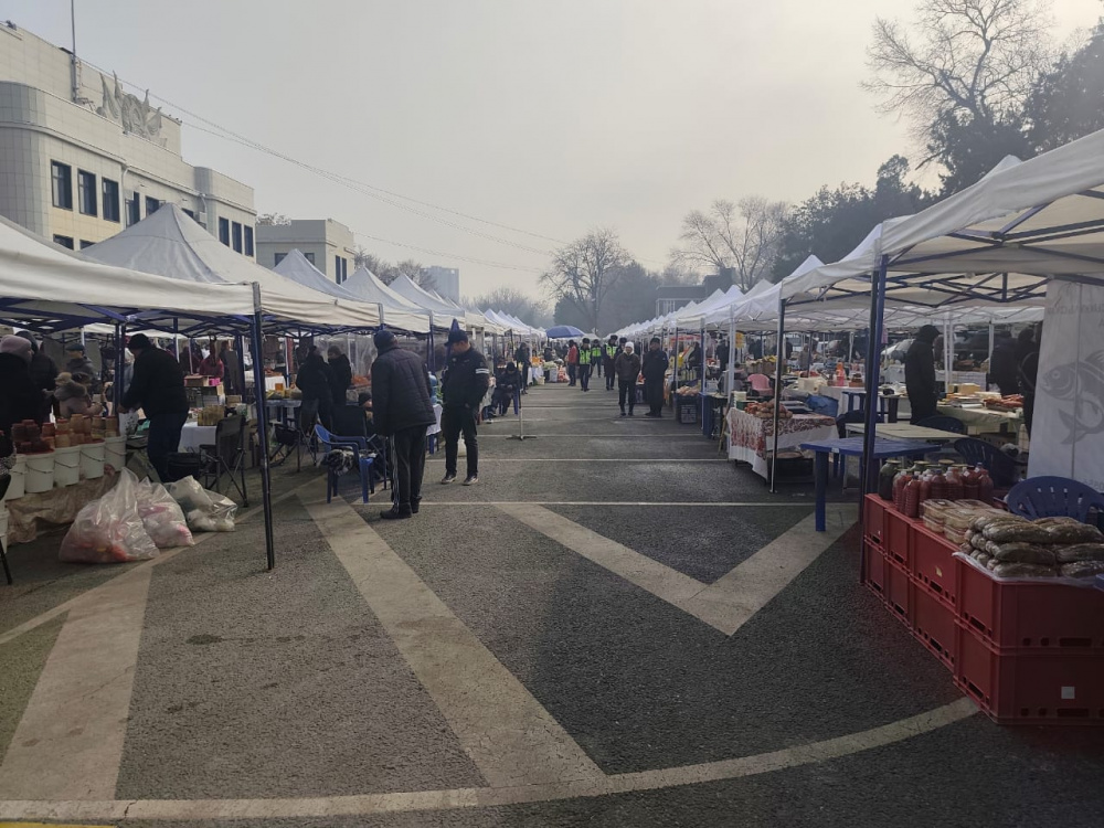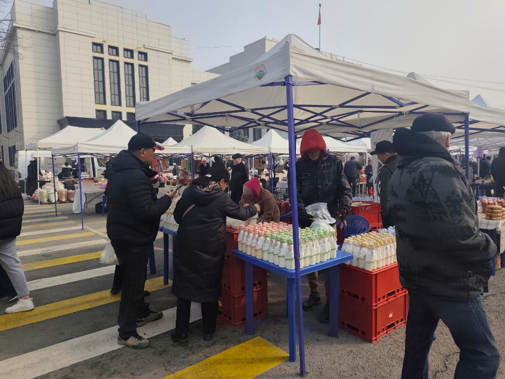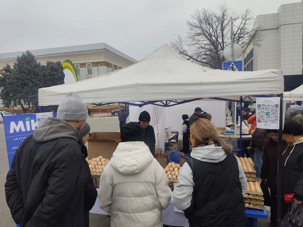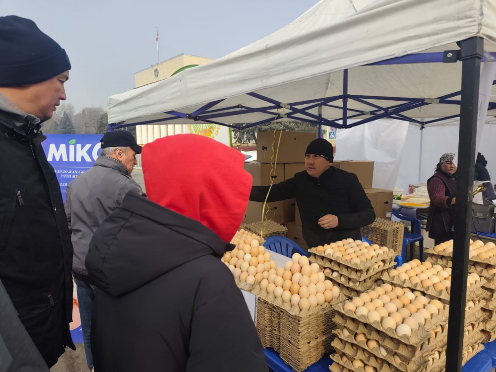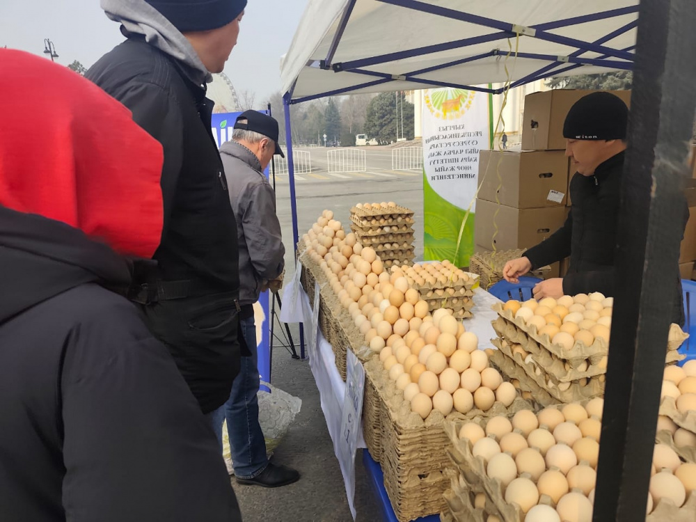 На Старой площади Бишкека в рамках ярмарки, организованной Министерством водных ресурсов, сельского хозяйства и перерабатывающей промышленности, начали продавать яйца по сниженным ценам.