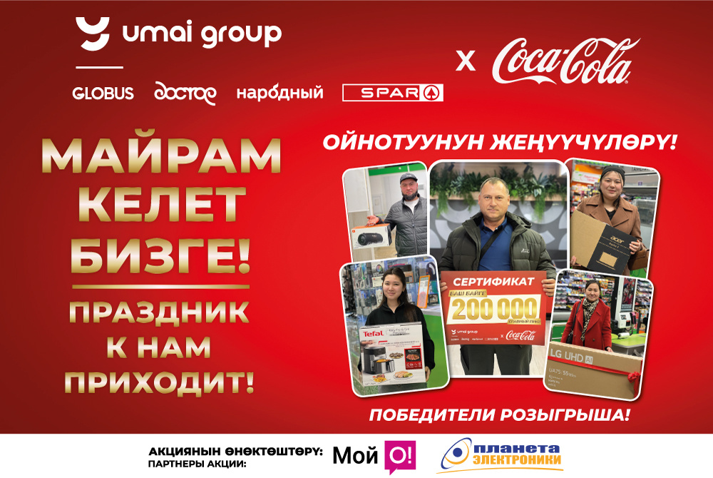 В сетях магазинов крупнейшего отечественного ретейлера "Умай Групп" подвели итоги зимней акции "Праздник к нам приходит!". Финальный розыгрыш прошёл 9 марта, в этот день определился обладатель главного приза в 200 тысяч сомов.