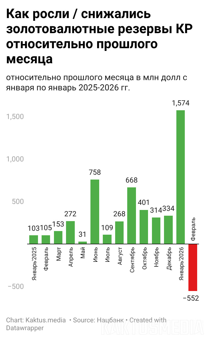 С помощью золотовалютных резервов Нацбанк в основном стабилизирует курс сома за счет проведения валютных интервенций, как отмечали в самом регуляторе. Подробнее прочитать о том, из чего состоят золотовалютные резервы Кыргызстана и сколько в них золота, можно здесь.