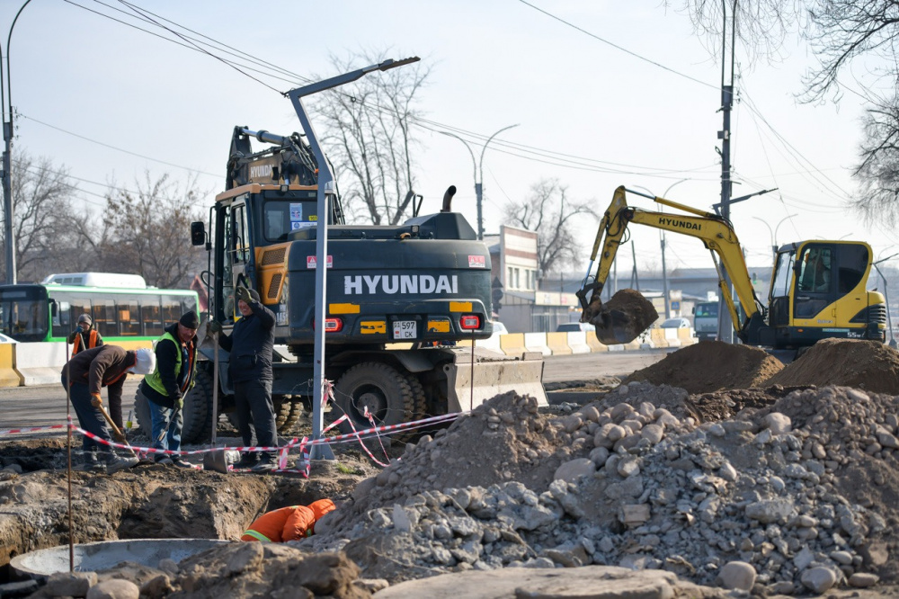 Также ведутся ремонтные работы на отрезке проспекта Дэн Сяопина от улицы Кайназаровой до улицы Сыдыгалиева с южной стороны.