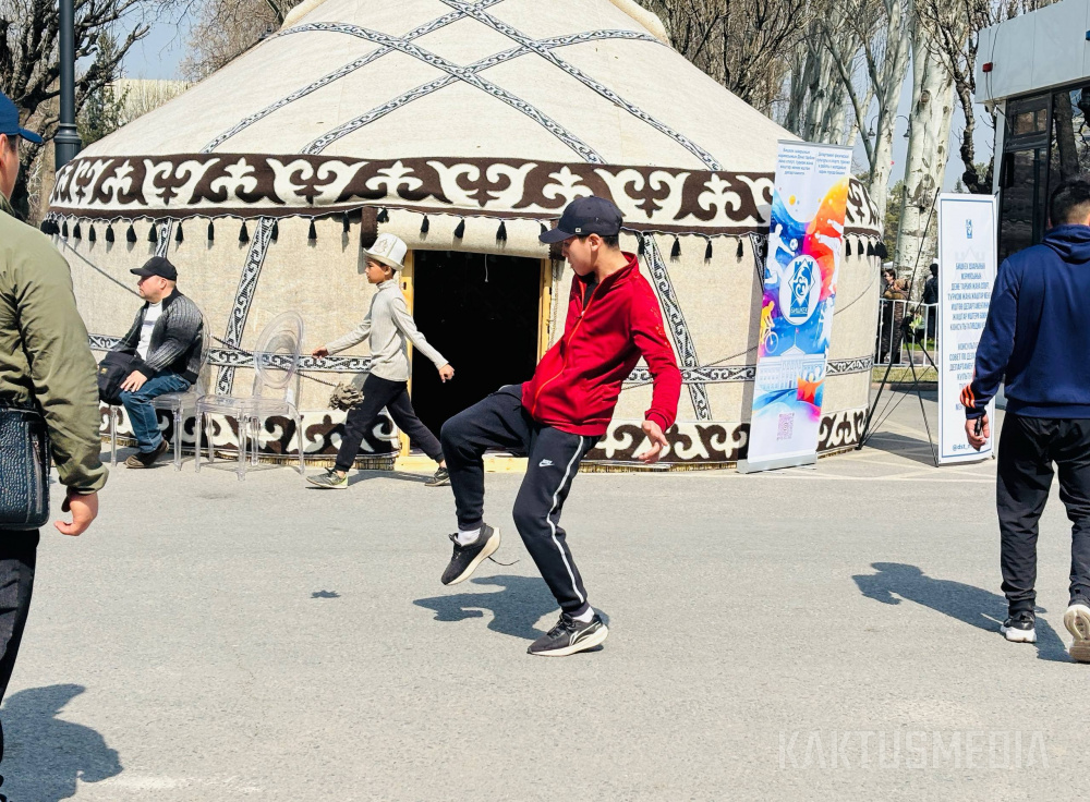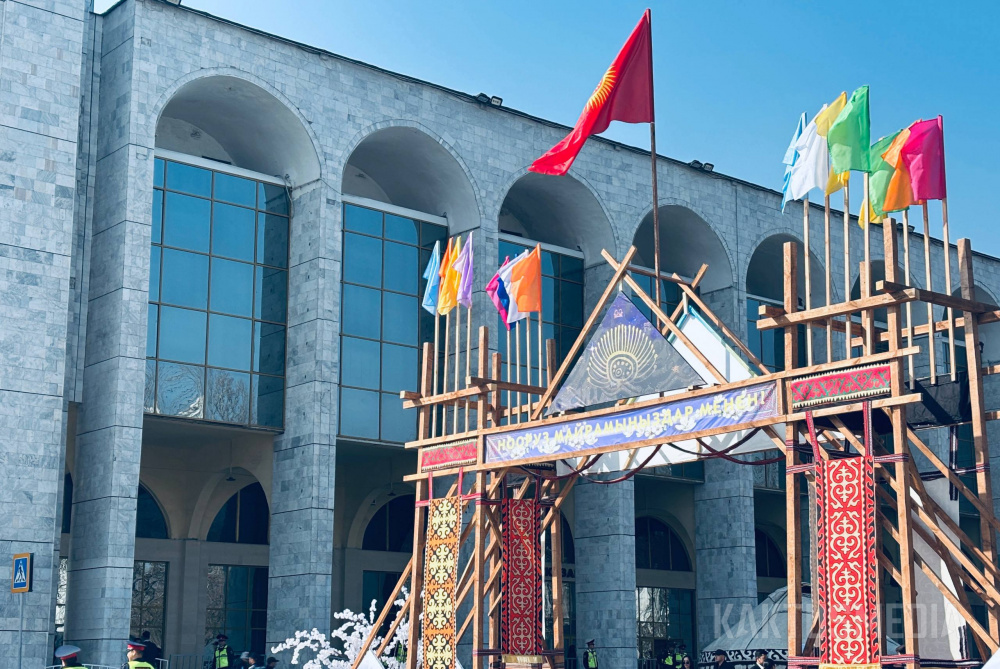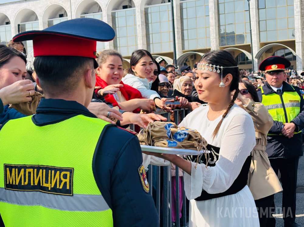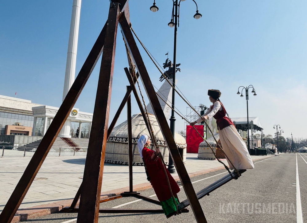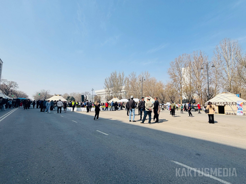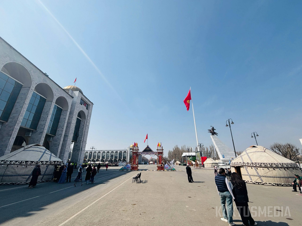 Праздничная программа на площади Ала-Тоо стартовала в 11:00 с обряда "алас" и выступлений танцевальных коллективов. Затем с поздравительными речами выступили мэр Бишкека Айбек Джунушалиев и глава кабинета министров Адылбек Касымалиев, отметившие особую значимость праздника для истории Кыргызстана.