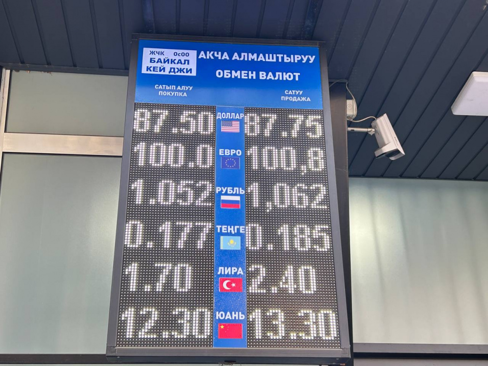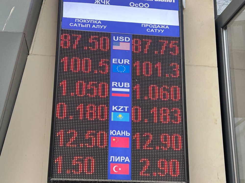 Доллар вырос в цене: покупка - по 87,5 сома, продажа - по 87,75.