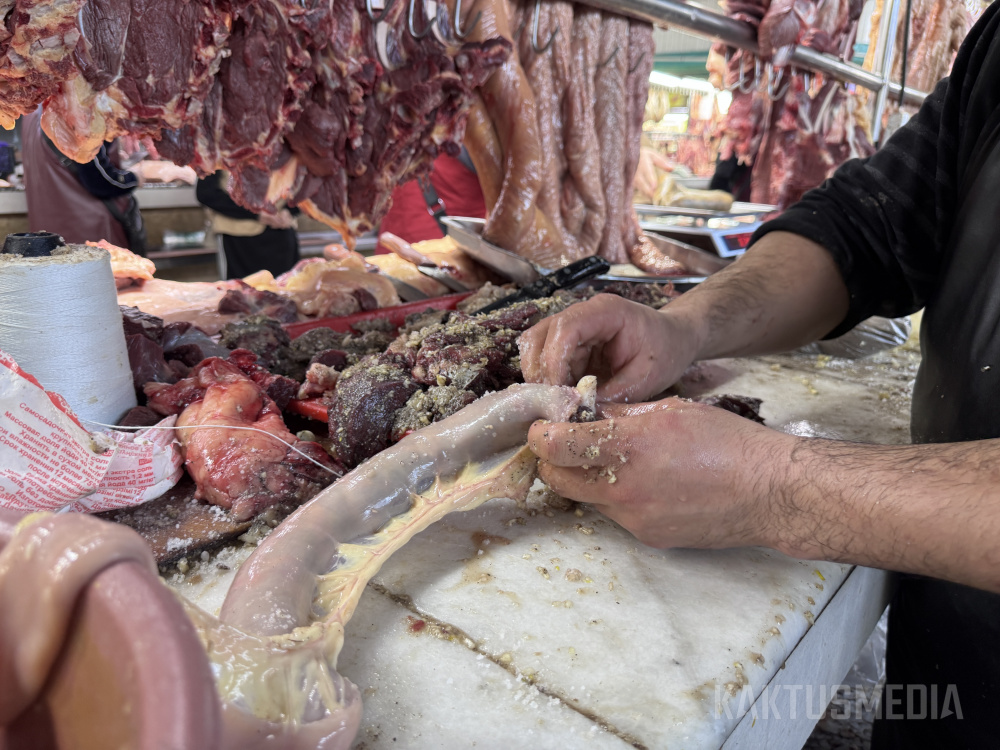 По словам мясника с Аламединского рынка Майсалбека Мойдунали уулу, дешевого мяса нигде нет. И разговоры о том, что они закупают мясо по 450-500 сомов, а потом накидывают почти 40-50%, нелогичны.