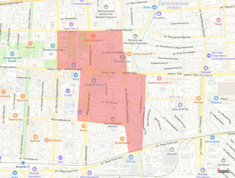 По данным пресс-службы мэрии столицы, с 09:00 холодной воды не будет в жилых домах, школах, детских дошкольных учреждениях, объектах здравоохранения и других объектах социально-бытового назначения и промышленности, расположенных в районе, ограниченном ул. Абдрахманова - ул. Фрунзе - ул. Суюмбаева - пр. Чуй - река Аламедин - линия железной дороги - ул. Суюмбаева - ул. Московская - ул. Шопокова - пр. Чуй.