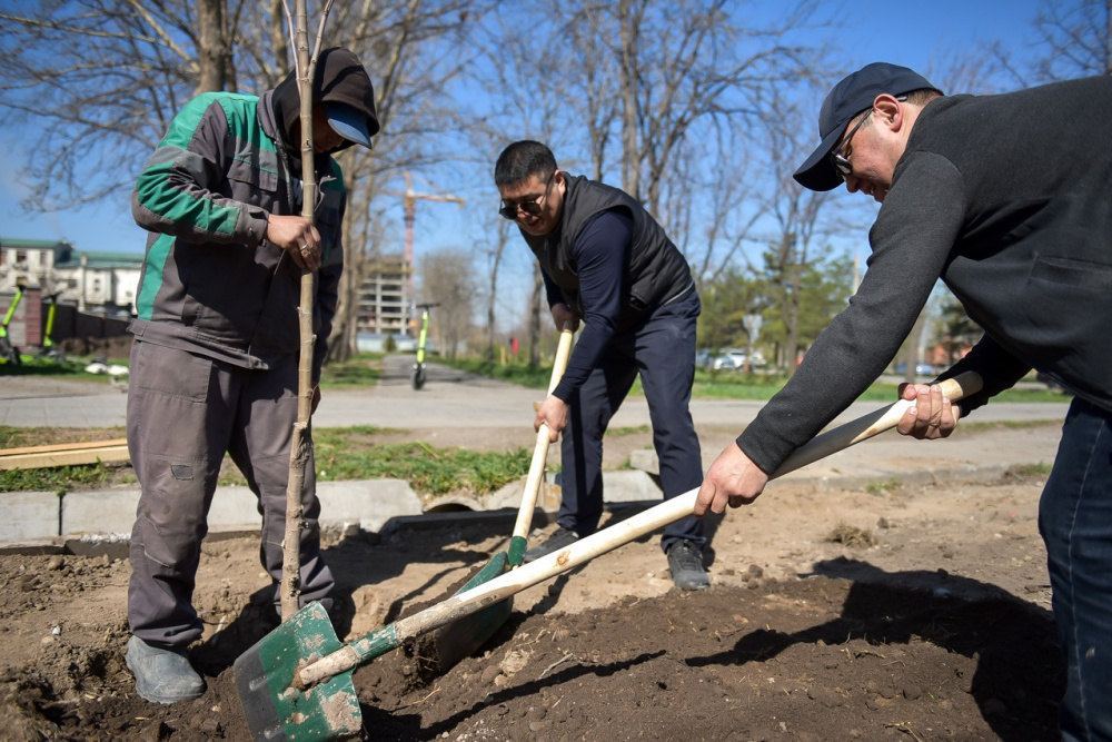 Как сообщили в мэрии, посадка зеленых насаждений прошла по улице Ауэзова с участием мэра Айбека Джунушалиева. Во время акции он высадил саженцы платана и подчеркнул важность особого контроля за поливом и уходом за молодыми деревьями.