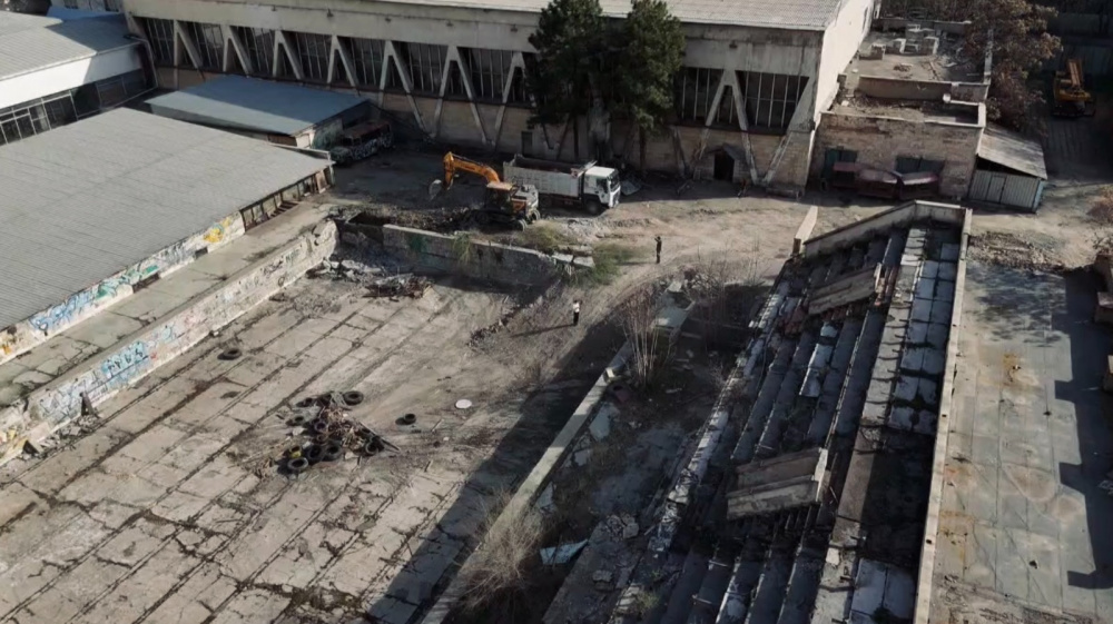 В Бишкеке во Дворце спорта имени Кожомкула начались демонтажные работы в зоне будущего строительства бассейна.