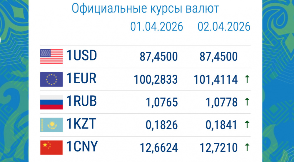 Курс иностранной валюты Нацбанка Кыргызстана на 2 апреля такой: