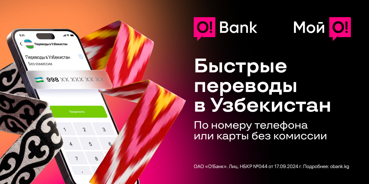 O!Bank, входящий в цифровую экосистему "Мой О!", и Uzum Bank - один из ведущих цифровых банков Узбекистана - объявляют о запуске сервиса денежных переводов из Кыргызстана в Узбекистан.