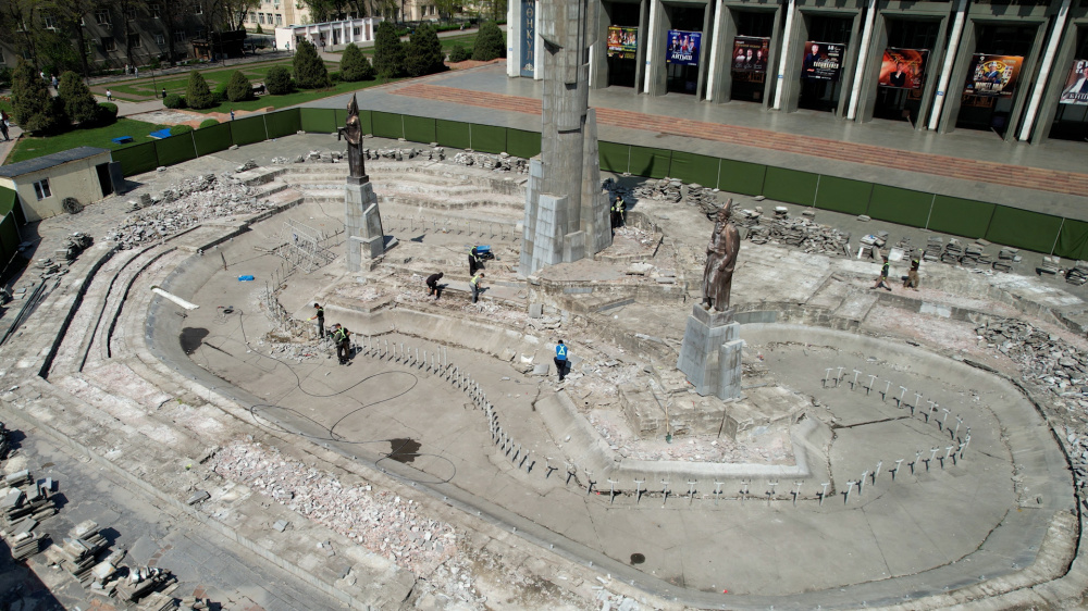 Перед Кыргызской национальной филармонией им. Токтогула Сатылганова начался демонтаж фонтанного комплекса. Его готовят к реконструкции.