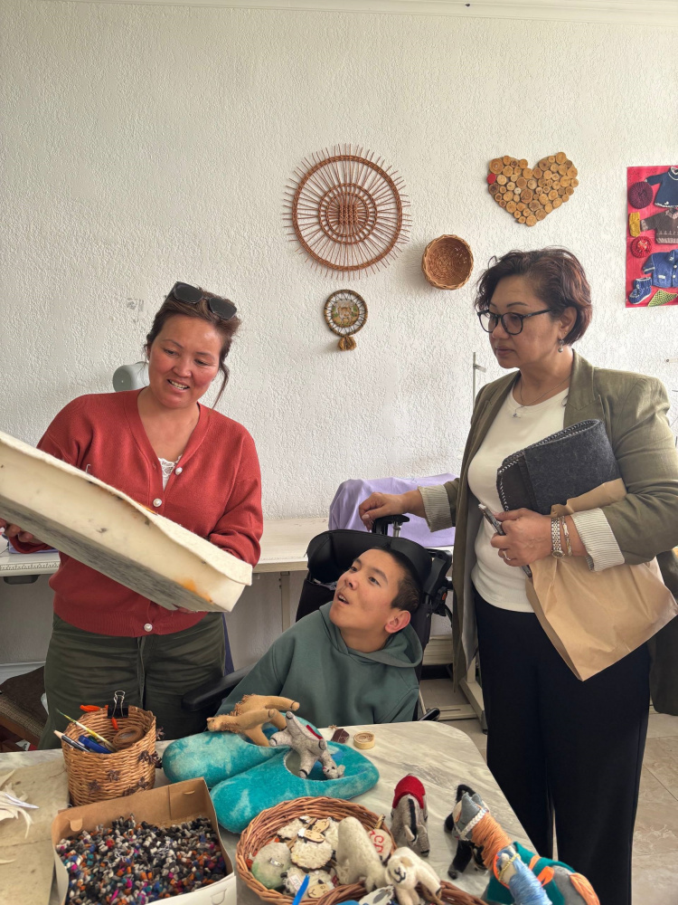 По словам директора социальной деревни Гульбарчын Такырбашевой, хозяйственная деятельность и учебно-вспомогательные мастерские выполняют роль социальной терапии, а также способствуют приобретению творческих навыков и трудоустройству. "Наша основная цель - чтобы люди с инвалидностью могли жить в открытом обществе, иметь доступ к образованию, труду и полноценной общественной жизни в соответствии с международными обязательствами страны", - сказала она.