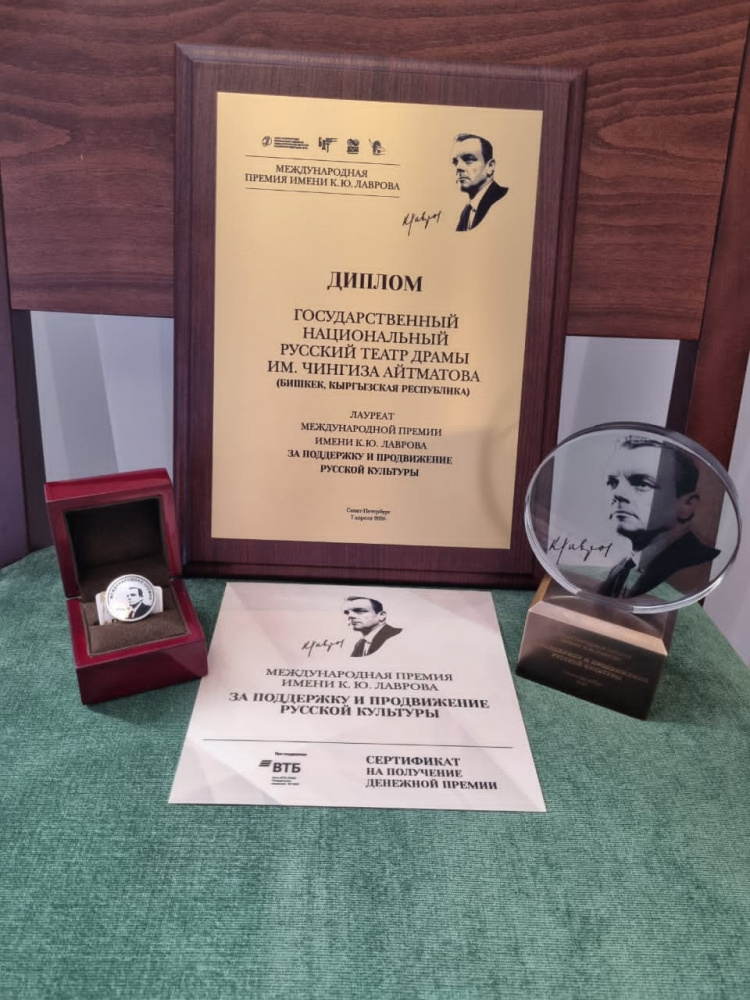 Премия имени Кирилла Лаврова вручена Государственному национальному русскому театру драмы имени Ч. Айтматова. На церемонии ее вручили директору театра Сергею Бардакову.