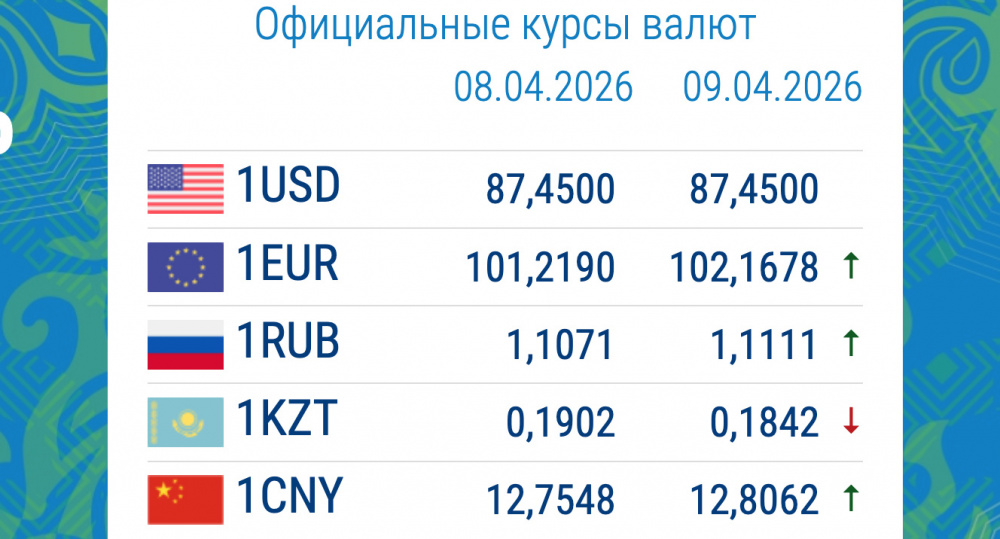 Курс иностранной валюты Нацбанка Кыргызстана на 9 апреля такой:
