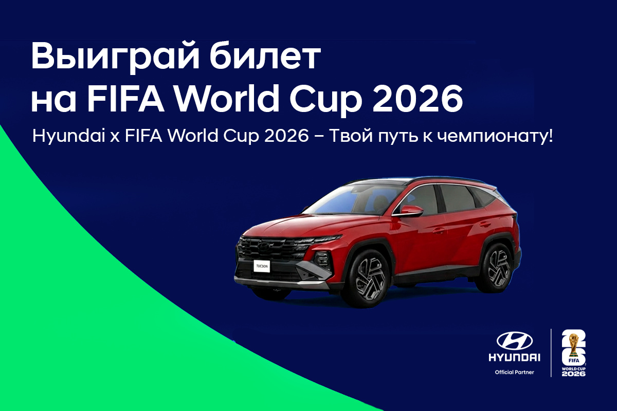 В рамках акции "Hyundai x FIFA World Cup 2026 – Tвой путь к чемпионату!" каждый клиент получает шанс стать частью мирового спортивного события. Для участия необходимо выполнить несколько простых условий: пройти тест-драйв автомобиля Hyundai, заключить договор купли-продажи и получить лотерейные билеты.