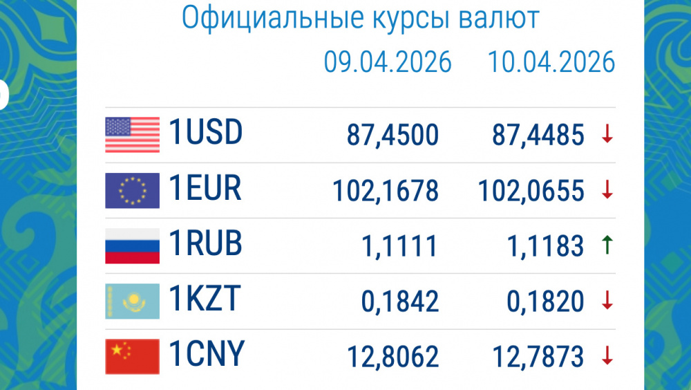 Курс иностранной валюты Нацбанка Кыргызстана на 10 апреля выглядит так: