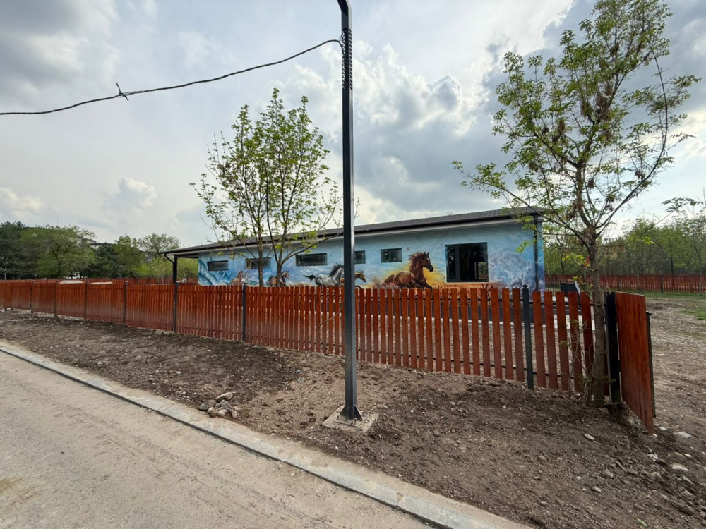 В глубине парка завершено строительство конюшни. Здесь откроют зону иппотерапии для людей с инвалидностью.