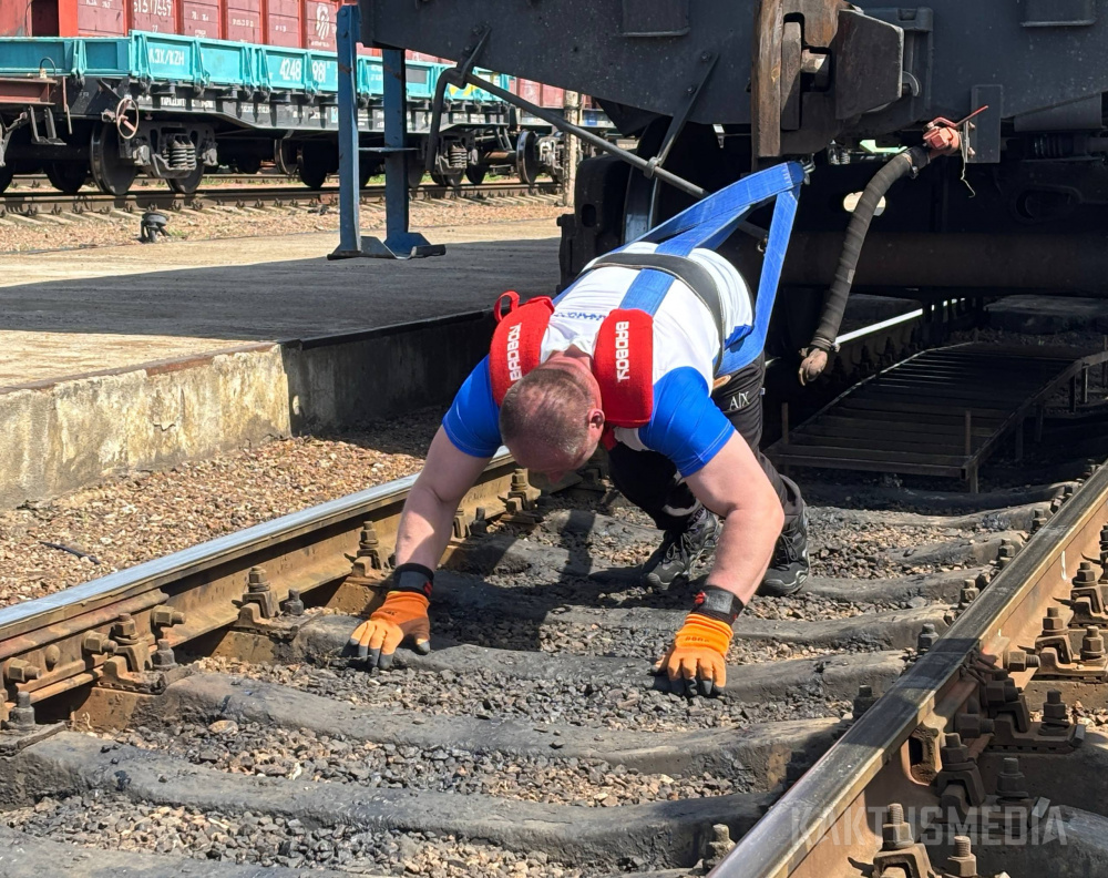 Спортсмен силового экстрима Алексей Тепляшин установил новый рекорд в Бишкеке. На станции "Бишкек-1" он сдвинул восемь пустых полувагонов общей массой 189 тонн 600 килограммов на 6,5 метра. Сам момент выглядел как сцена из фильма, когда главный герой совершает невозможное для спасения окружающих. Для силового экстрима это не просто зрелище, а демонстрация предельных возможностей человека.