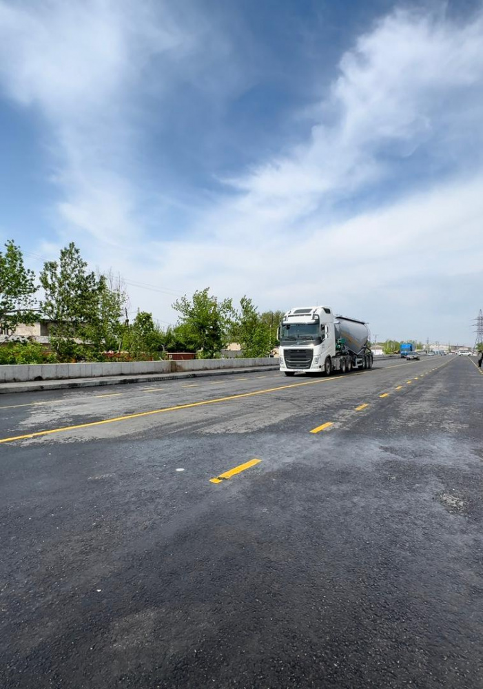 "Кроме того, на участке дороги 0-350 метров уложен первый слой асфальтобетонного покрытия толщиной 9 см. По обеим сторонам дороги обустроены тротуары, а с правой стороны установлены лотки для отвода воды. После реконструкции категория дороги была изменена - она расширена с двух до четырех полос движения", - рассказали в Минтрансе.