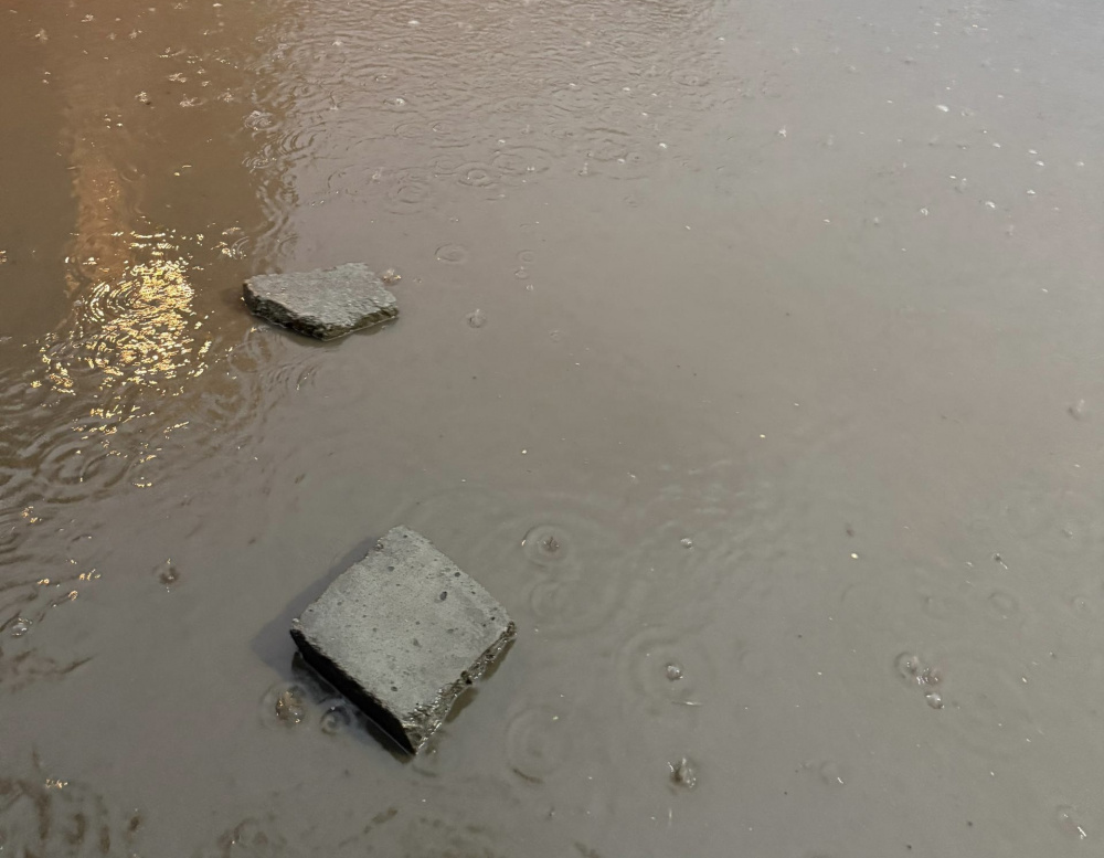 "Чтобы люди могли пересечь подтопленный участок, на месте выложили бетонные блоки, которые используются как импровизированная переправа через воду", - сообщили горожане.