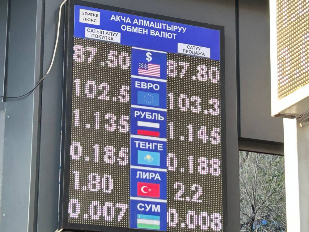 Курс доллара не изменился: покупка - по 87,5 сома, продажа - по 87,8.