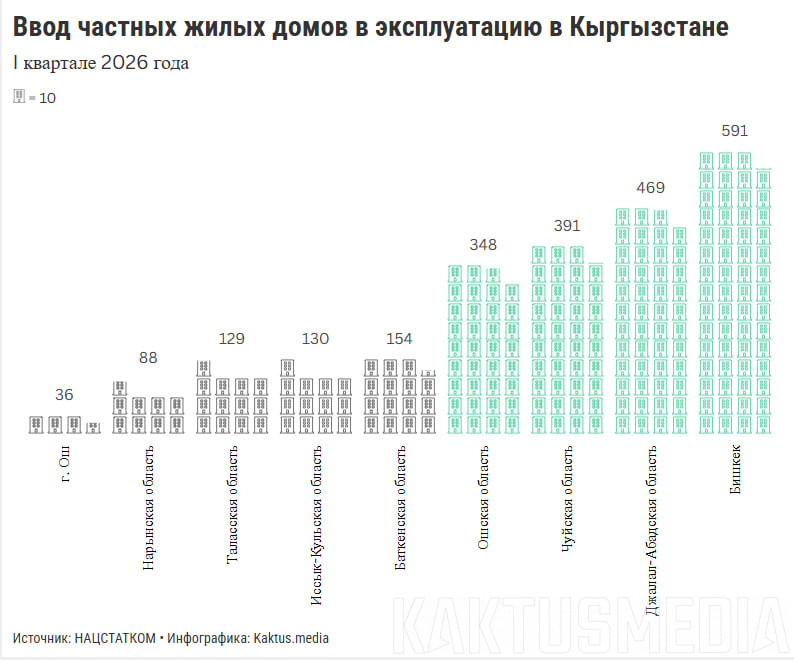 Сколько и где жилых домов ввели в эксплуатацию в Кыргызстане в 2026 году? График
