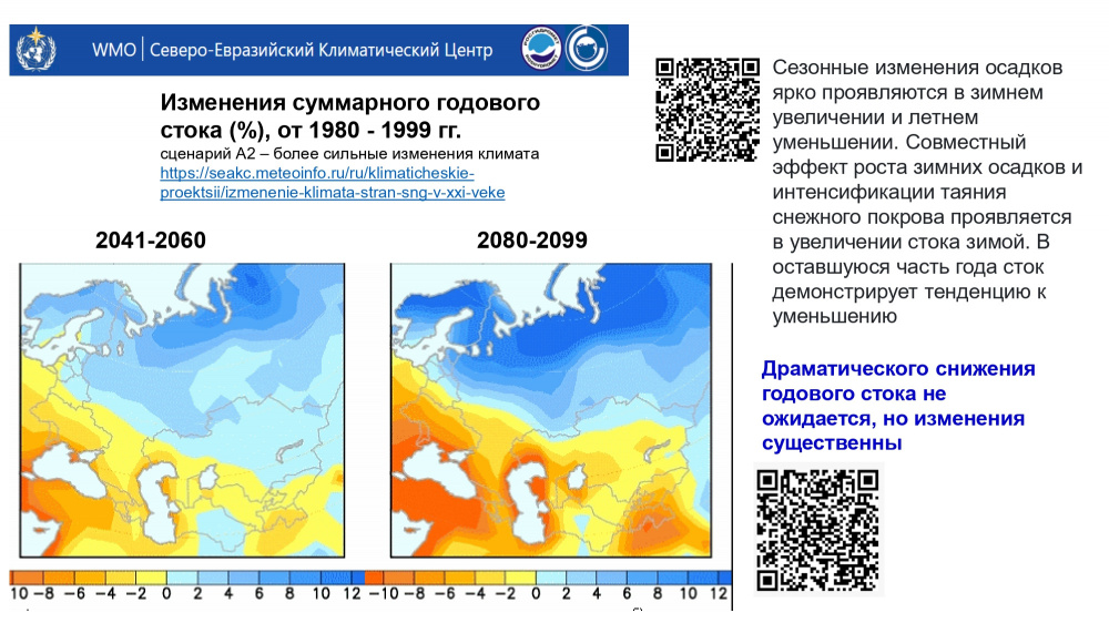 - Вода для ГЭС точно будет. По прогнозу Северо-Евразийского климатического центра по изменению суммарного стока рек, сток будет падать к концу века на большей части территории Центральной Азии. Но неравномерно.