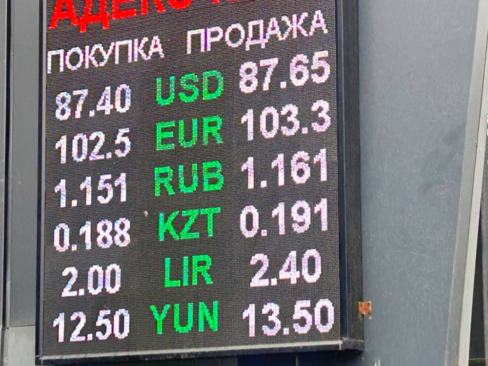 Евро также снизил стоимость. Его покупают по 102,3-102,8 сома, а продают - по 103,1-103,6.