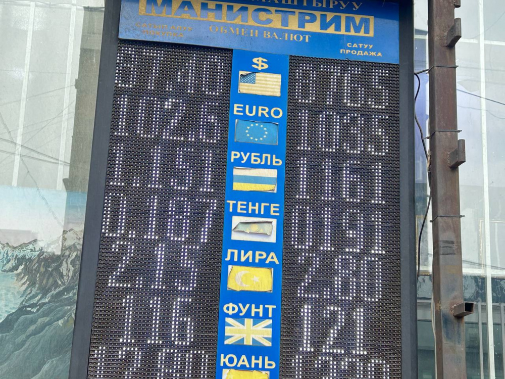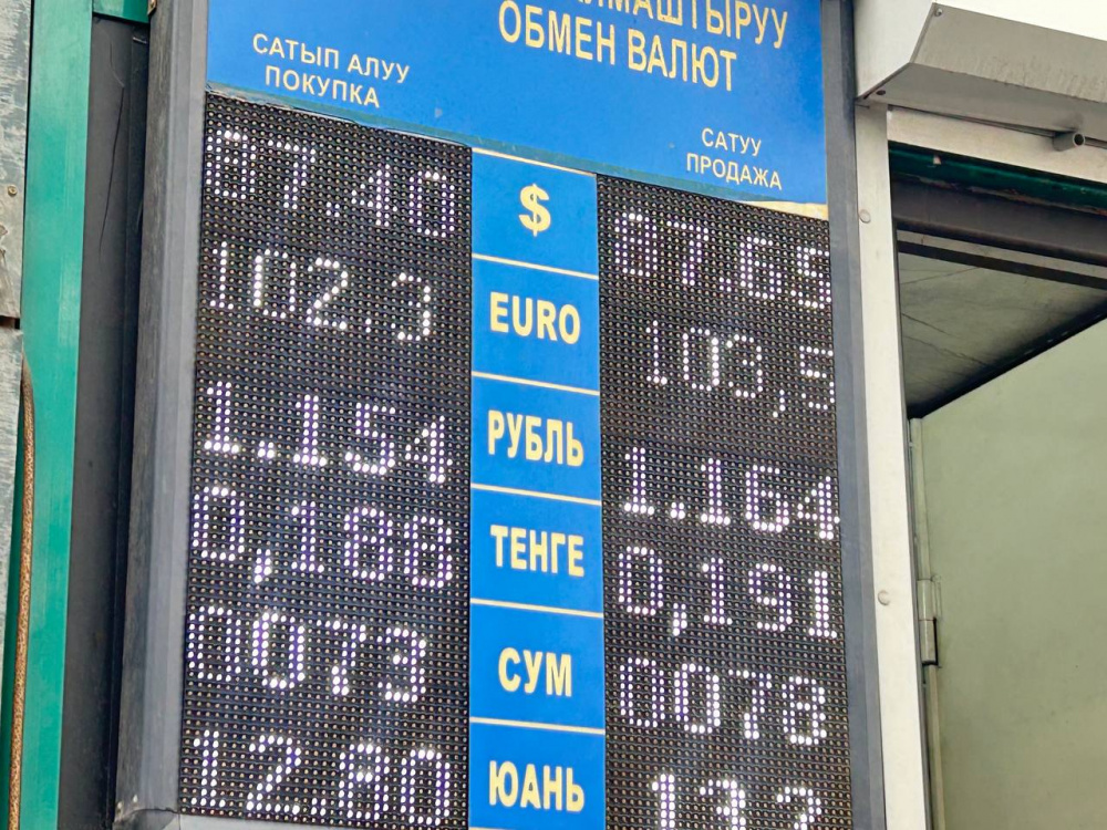 Российский рубль в стоимости не поменялся. Цена его покупки - 1,14-1,15 сома, продажи - 1,15-1,16.