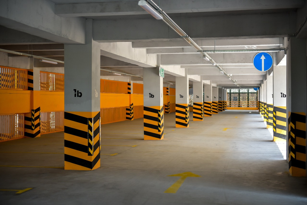 Общая площадь объекта составляет более 11 тыс. кв. м. Автостоянка включает подвальный и пять наземных уровней. В здании предусмотрены удобные въезд и выезд для автомобилей.