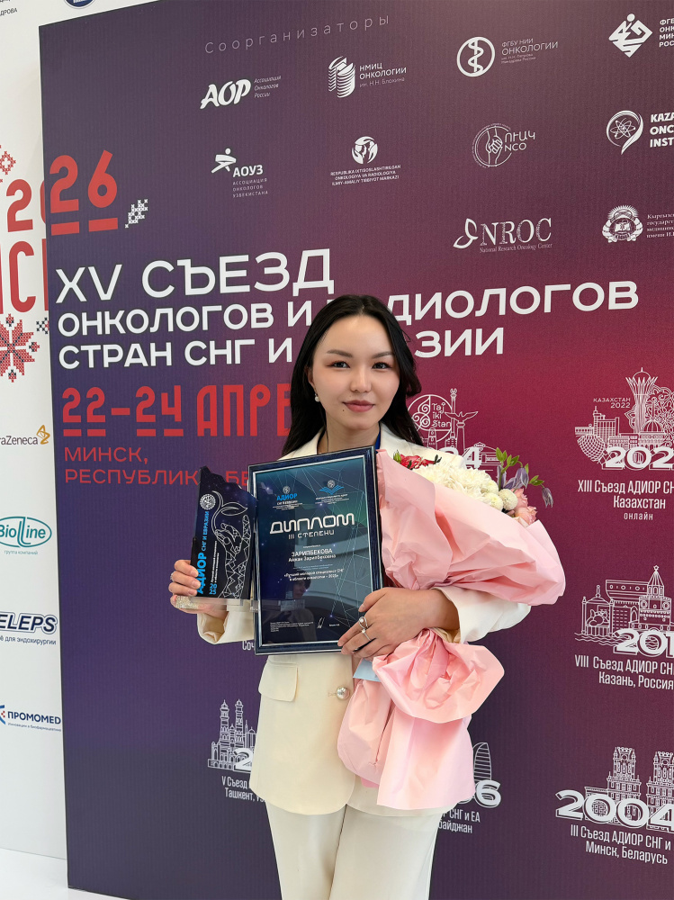 Выпускница Кыргызской государственной медицинской академии имени И. К. Ахунбаева Айжан Зарипбекова получила диплом III степени на международном конкурсе "Лучший молодой специалист в области онкологии" среди молодых онкологов стран СНГ.