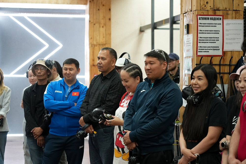 Экскурсию по базе провела президент Федерации стрелкового спорта Жибек Молдоева. Она рассказала о планах федерации, а также о самом виде спорта и о том, как спортсмены готовятся к международным стартам.