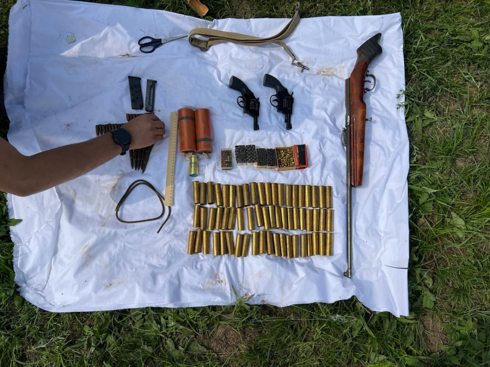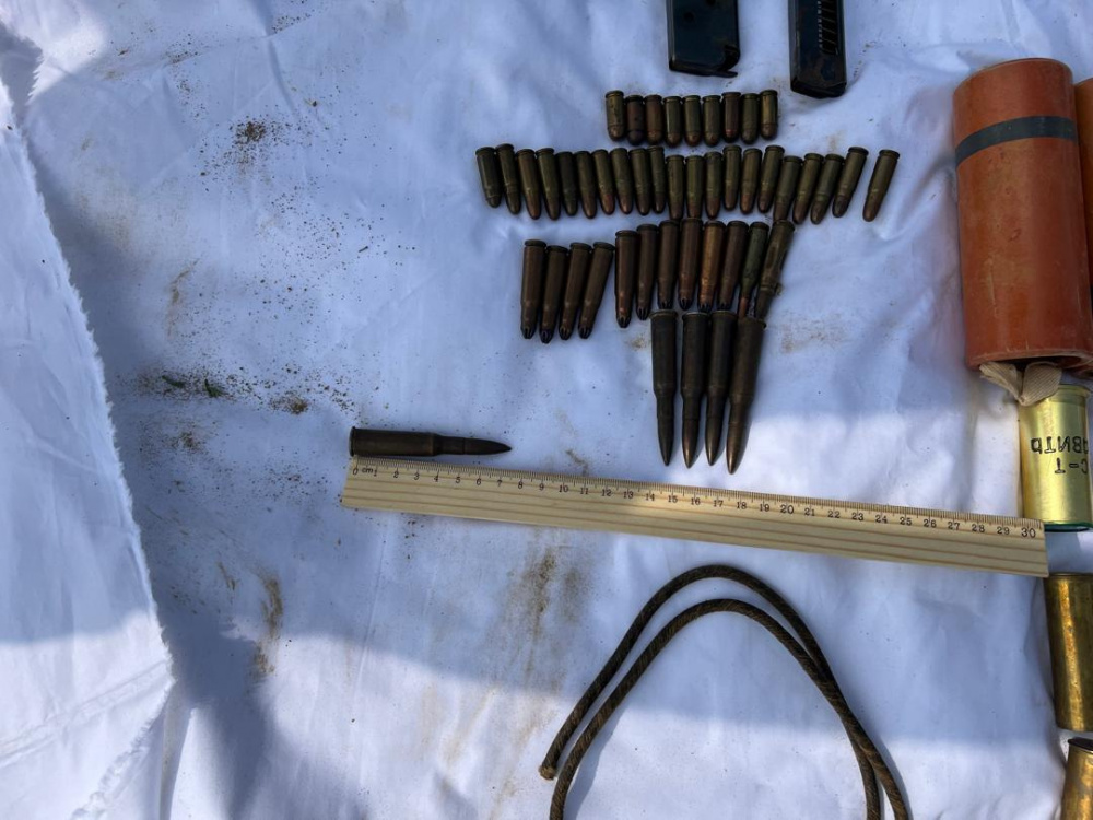 В тайнике обнаружили обрез охотничьего ружья, два револьвера, две ручные газовые гранаты "Черемуха-1", бикфордов шнур, магазины к пистолетам ПМ и ТТ, а также патроны к стрелковому и охотничьему оружию.