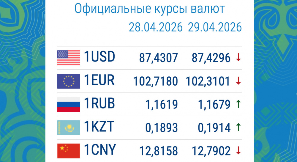 Курс иностранной валюты Нацбанка Кыргызстана на 29 апреля выглядит так: